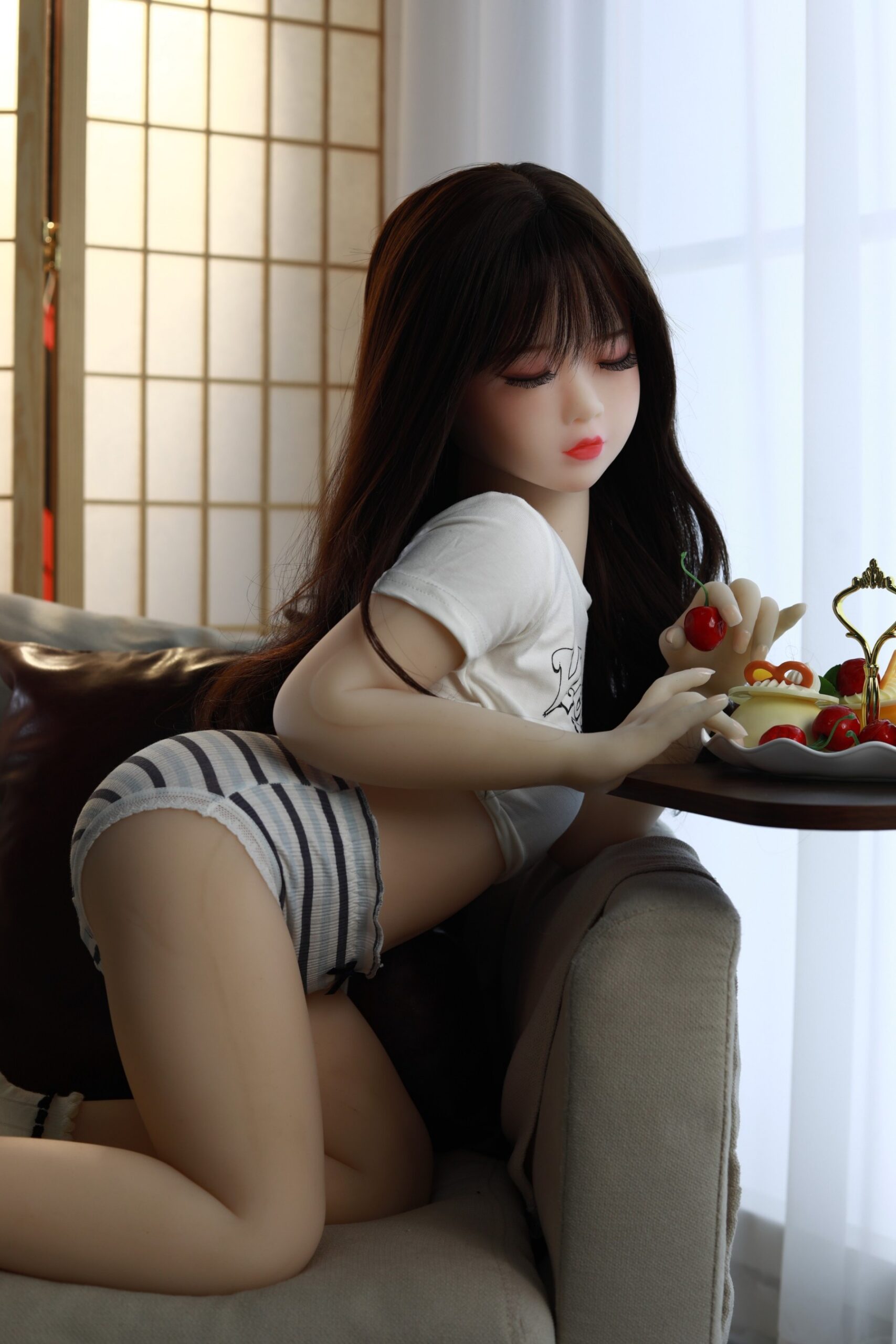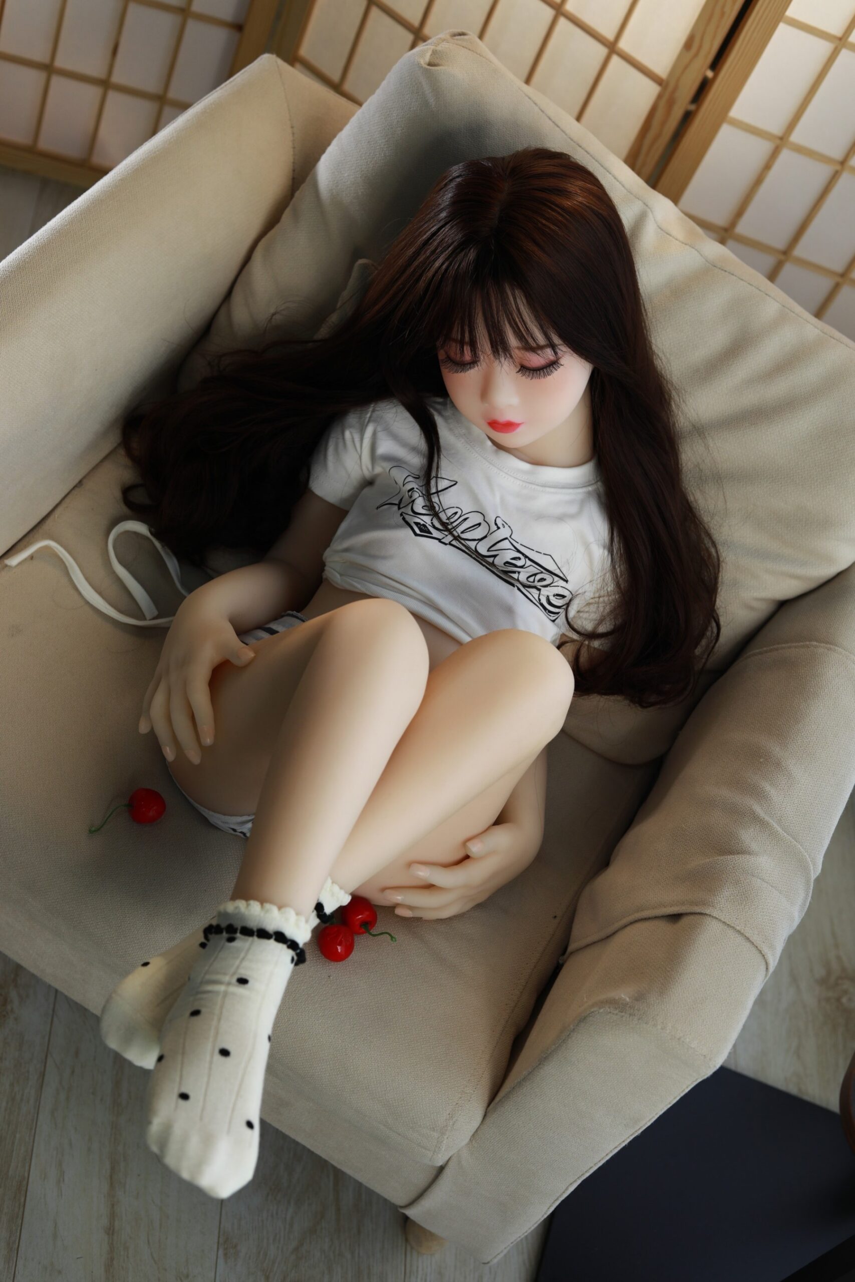 Plokščiakrūtė sekso lėlė yra 22 metų ir turi natūraliai mažas, plokščiakrūtes krūtis. Kai tikra sekso lėlė užmerkia akis, atrodo, kad mėgaujasi viskuo. Sekso lėlė užmerktomis akimis gali būti labai seksuali ir tikroviška.