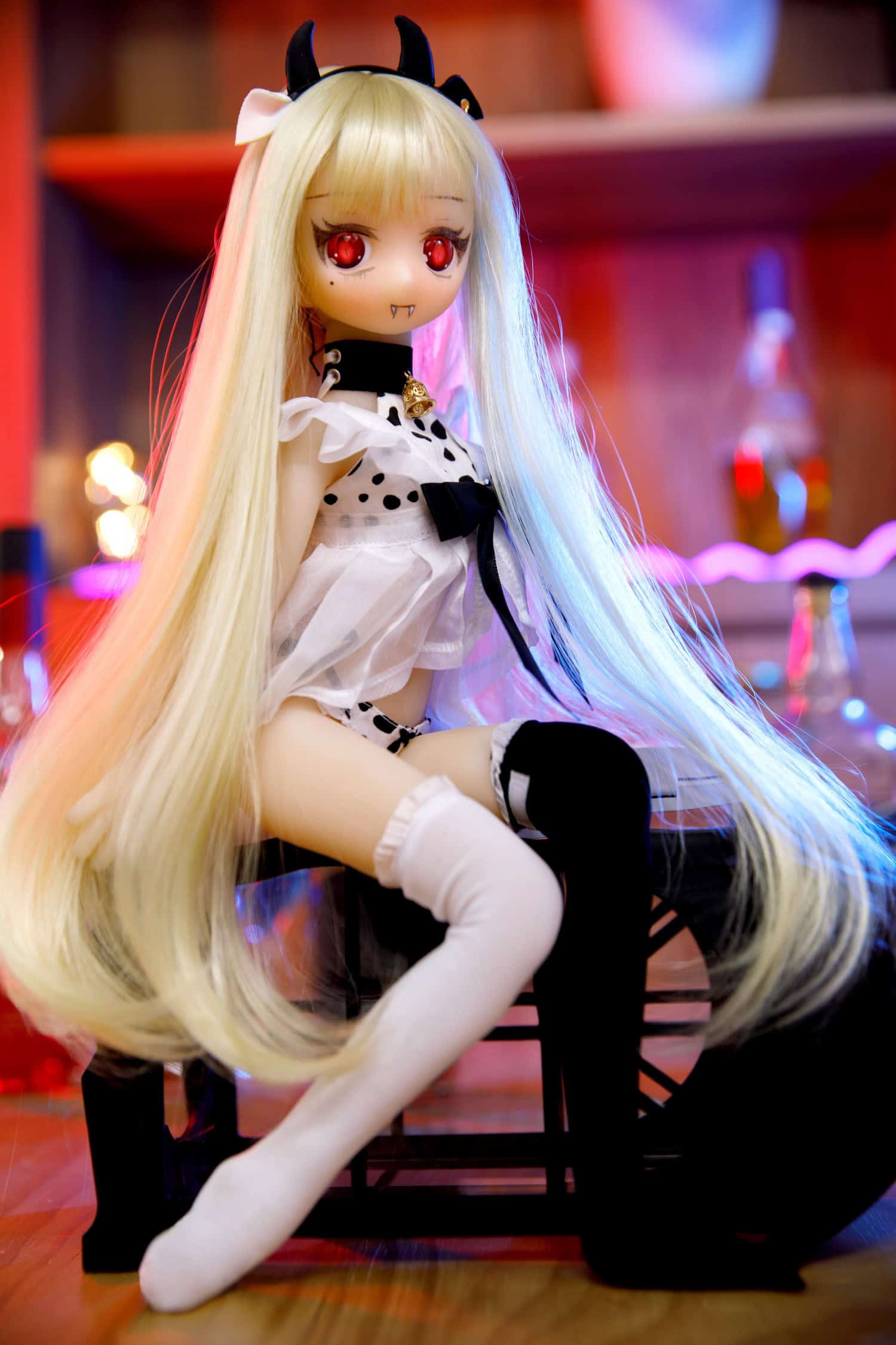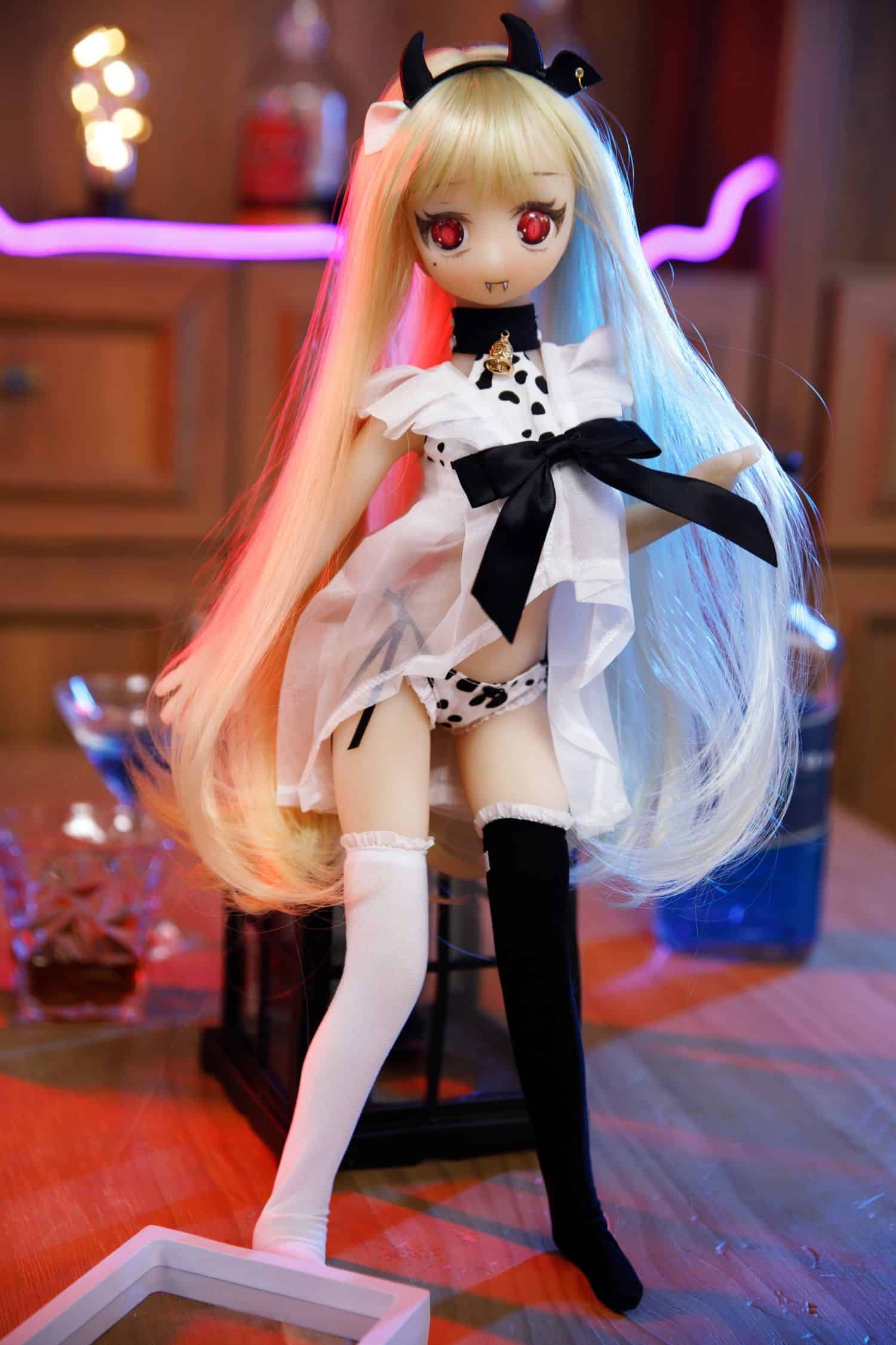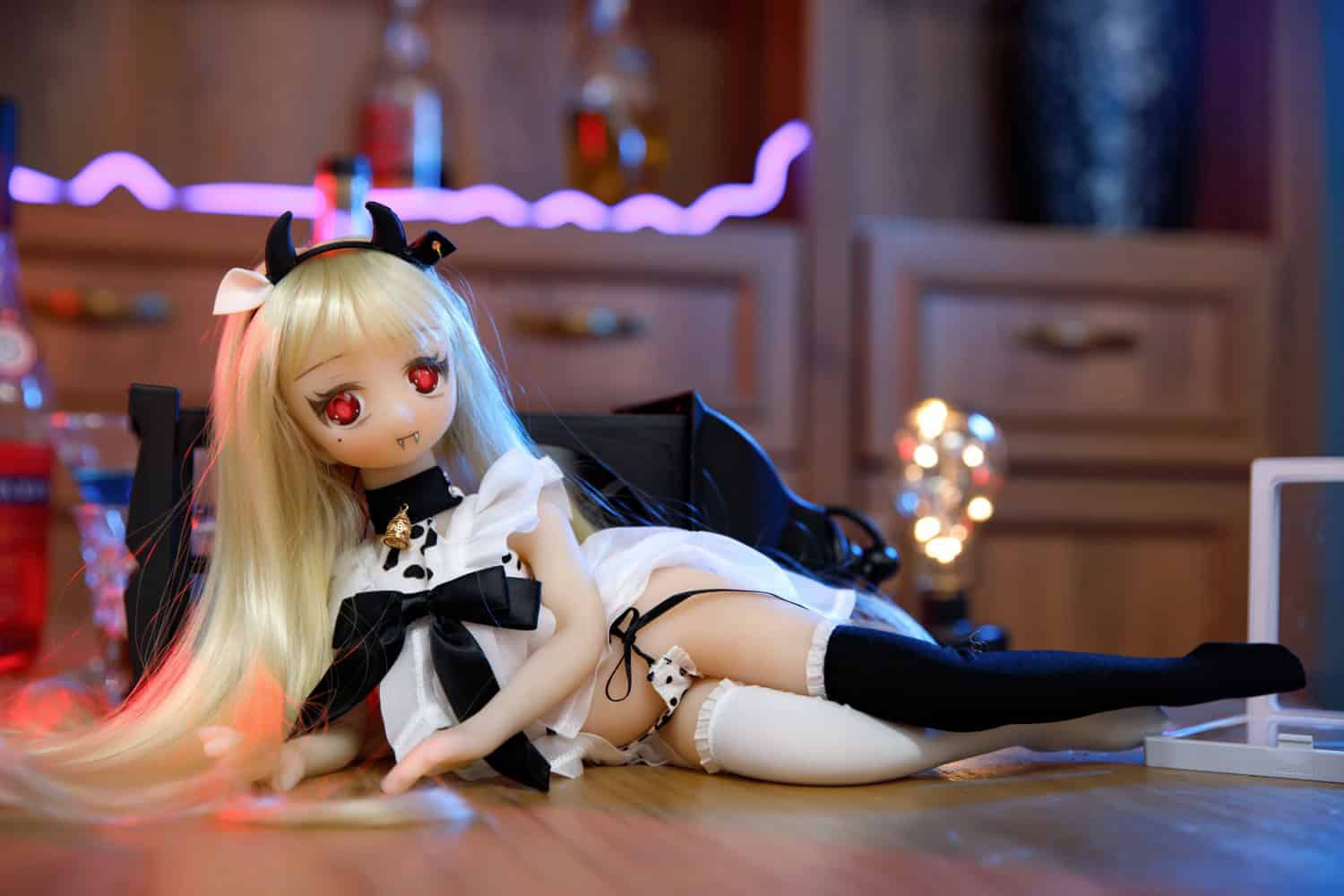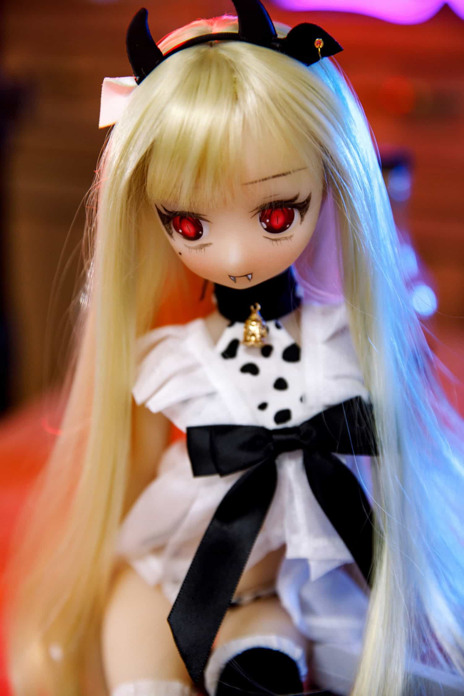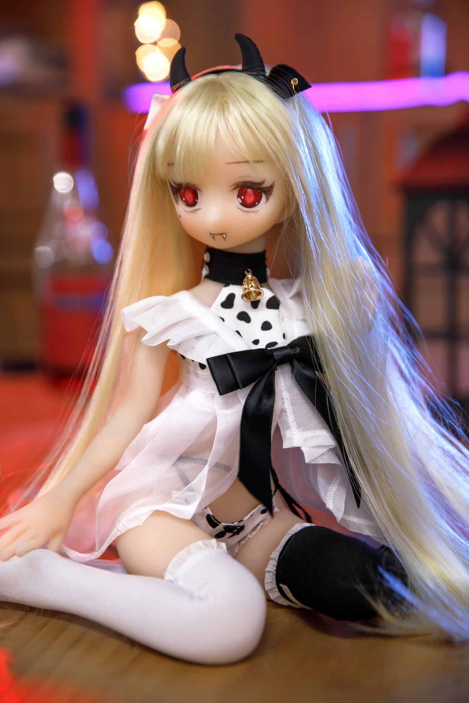 The small sex doll has red eyes and a smiling mouth with two pointed teeth, and its facial features have an anime feel. The mini breasts can also be kneaded, which can make the sex doll’s figure look more curvy.